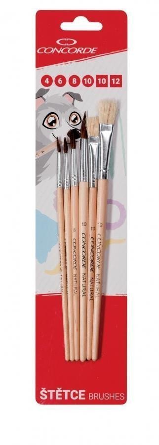 Concorde Sada štětců Natural kulaté, ploché 6 ks