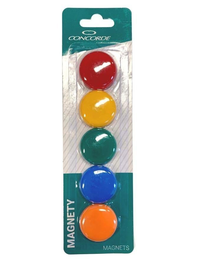 Colorful round magnets with a diameter of 35mm. Diameter of the inner magnet is 1.6mm. The magnets are suitable for any place you can think of, such as bulletin boards, flip charts, boards, or even refrigerators. The package contains 5 pieces on a blister.