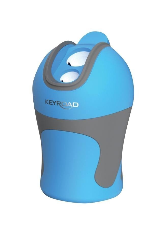 Opening sharpener with a large-capacity container suitable for sharpening graphite pencils. Two openings with diameters of 8 mm and 11 mm. Soft grip. Supplied in blue (display).