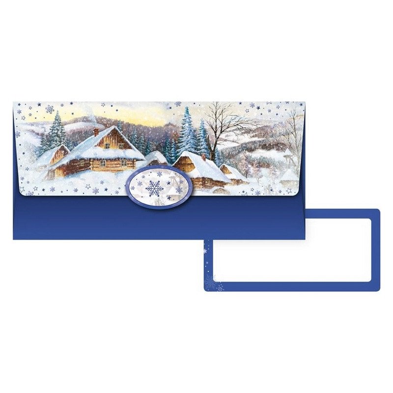 A gift envelope for money with a Christmas motif of a snow-covered village and a closing flap. It is ideal for gift purposes when you want to present money in an elegant and tasteful way. Inside, there is a blank card on which you can write a dedication.