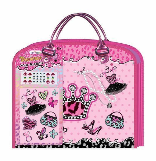 It includes a plastic art portfolio, 28 adhesive jewels, and a sheet of 3D stickers.
