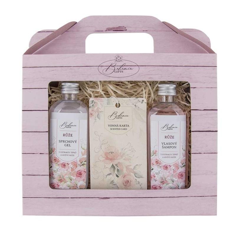 Dárková sada Růže (sprchový gel, vlasový šampon, vonná karta)