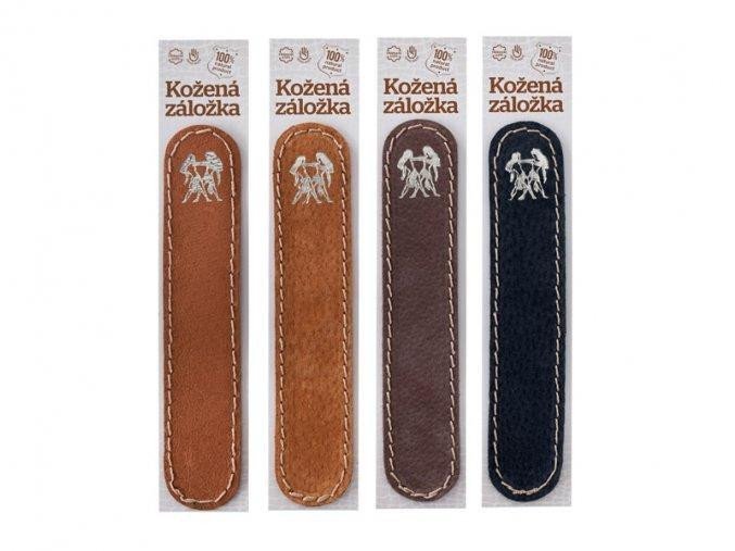 Kožená záložka do knihy Blíženci - kůže hnědá semiš, zlatá ražba