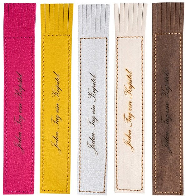 Kožená záložka se střapci Jeden Tag ein Kapitel