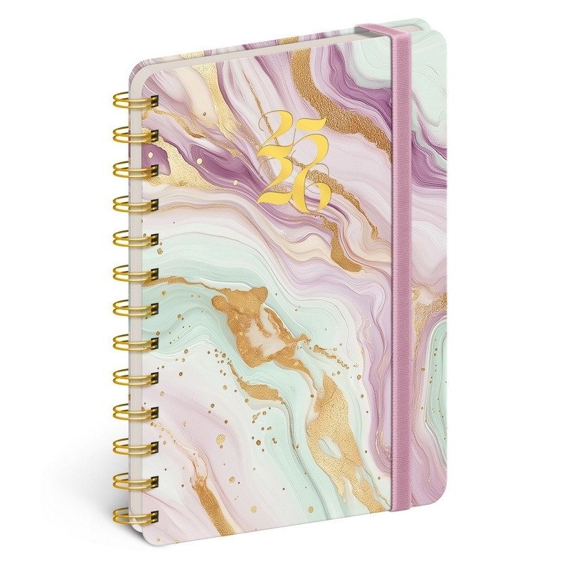 Diář 18měsíční spirálový 2025/2026 Petito - Růžový mramor, 13 x 18 cm