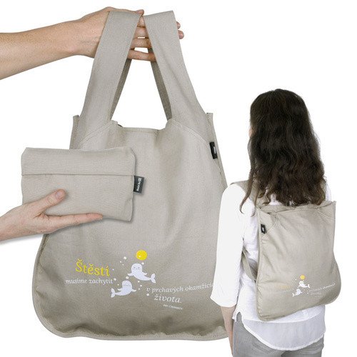 Sometimes a backpack, other times a bag - that's a bagpack. It's smaller than a backpack, so you can pack it up and have it handy when needed. And it's up to you whether you carry it as a shoulder bag or as a backpack. It has wide shoulder straps, and the pocket in which it's packed transforms into an inner pocket for small items. And with its design - and quote - it can bring inspiration with every use. "Happiness must be captured in the fleeting moments of life." - Sri Chinmoy