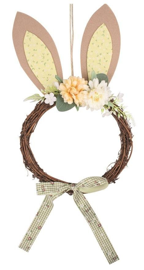 Věnec s filcovýma ušima a mašlí 23 x 42 cm, žlutý