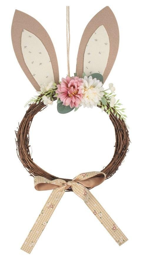 Věnec s filcovýma ušima a mašlí 23 x 42 cm, hnědý
