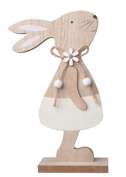 Zajíc dřevěný s béžovou sukní na postavení 11,5 x 20 cm