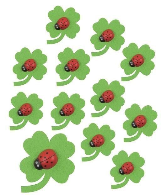 Felt four-leaf clovers with ladybug and adhesive 3 cm, 12 pcs in a bag
