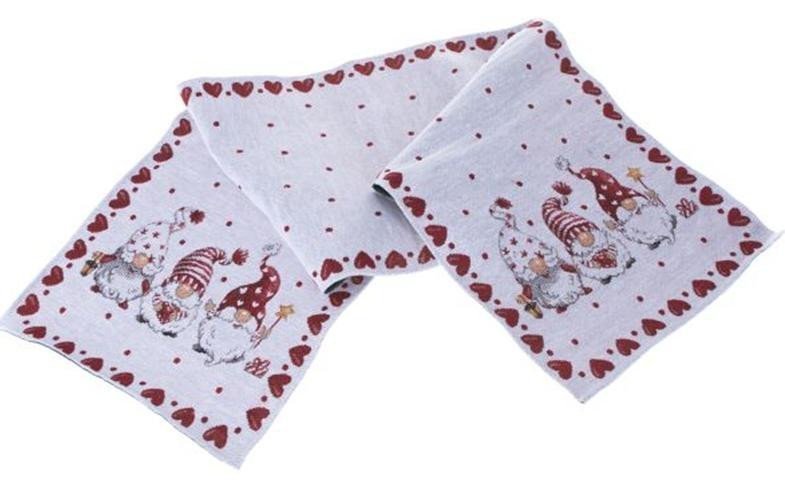 Ein eleganter Tischläufer mit fröhlichen Wichteln verschönert Ihr Zuhause. 33 x 140 cm. Waschbar bei 30 °C. Bügeln möglich. Nicht im Trockner trocknen, bleichen oder chemisch reinigen.