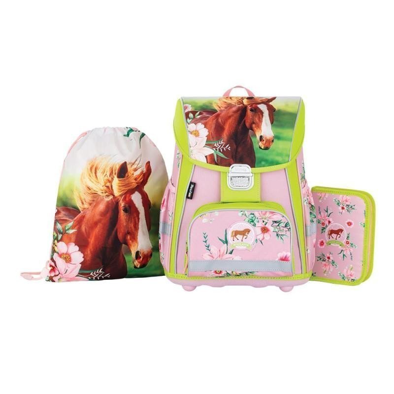 Das Schulset besteht aus einem Rucksack, einer Turntasche und einem einlagigen Federmäppchen mit zwei Fächern (ohne Inhalt). Rucksack: Der Premium-Schulrucksack ist ergonomisch geformt und bietet optimalen Sitz. Verstärkte Rückenpartie und Innenpolsterung sorgen für Formstabilität. Die Polsterung besteht aus einem angenehm atmungsaktiven Material, und die breiten, gepolsterten Schultergurte verteilen das Gewicht gleichmäßig auf den Schultern des Kindes. Der Rucksack verfügt über ein geräumiges Hauptfach, in dem alle Schulsachen für Kinder der 1. und 2. Klasse bequem Platz finden. Der robuste Boden verhindert, dass der Inhalt umkippt und herausfällt. Er wird mit einem Sicherheitsverschluss geschlossen. Die Vordertasche ist für Snacks geeignet und mit reflektierenden Elementen versehen, die die Sichtbarkeit des Rucksacks erhöhen. Volumen: 28 l. Tragkraft: 8 kg. Turntasche: Eine hochwertige Turntasche aus Material. Sie wird mit Kordelzügen verschlossen. Geeignet für Schule, Sport und Freizeitaktivitäten. Federmäppchen: Ein einlagiges Federmäppchen mit zwei Klappen ohne Inhalt. Gummischlaufen zur Aufbewahrung von Schreibutensilien. In der inneren Klappe befindet sich eine transparente Tasche für den Stundenplan.