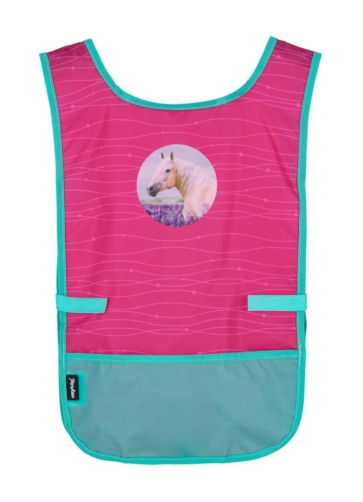 Ponczo apron for art education or other creative activities. Pullover style with Velcro fastening on the sides. One spacious pocket in the front. Material 100% polyester.