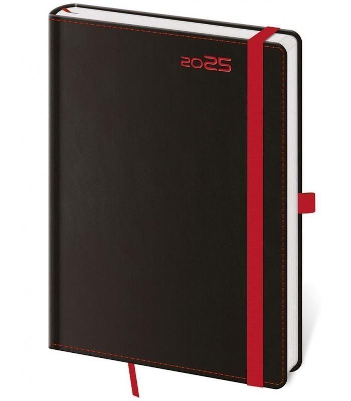 Diář 2025 týdenní A5 Black Red s poutkem na propisku