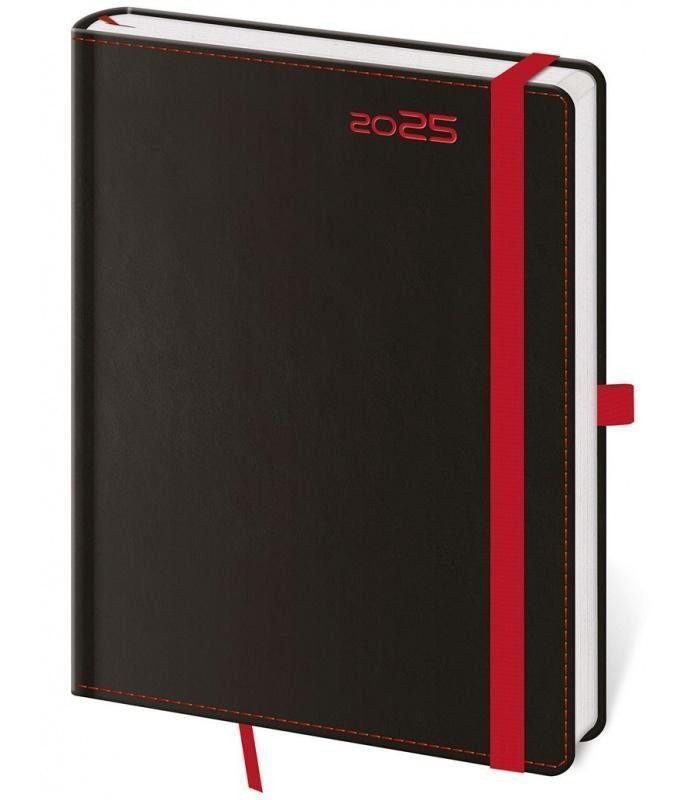 Diář 2025 týdenní B6 Black Red s poutkem na propisku