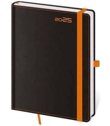 Diář 2025 týdenní B6 Black Orange s poutkem na propisku