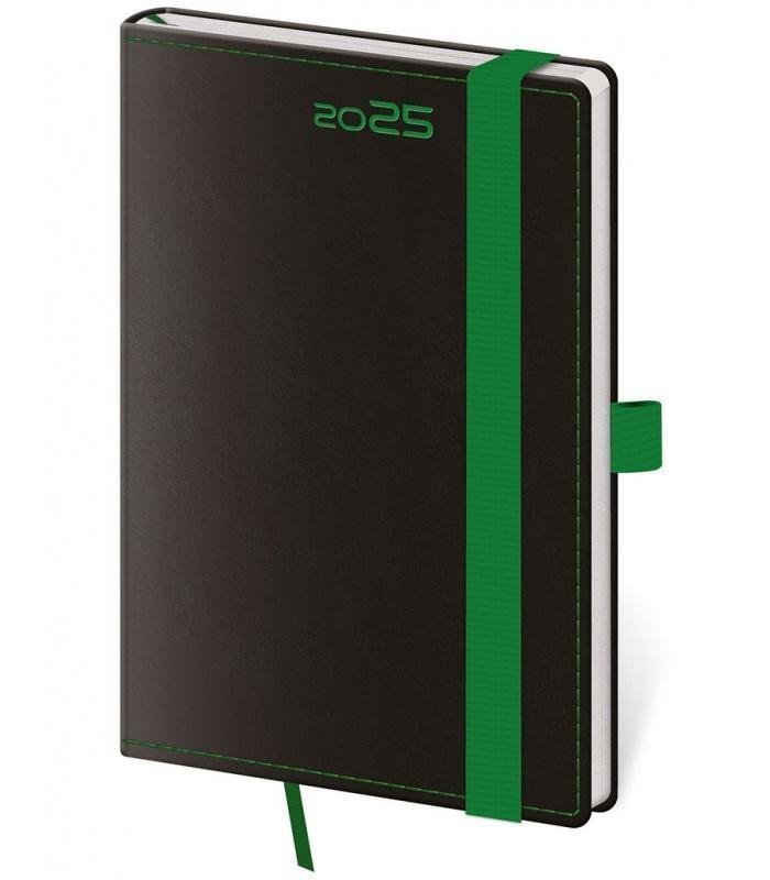 Diář 2025 Black Green týdenní kapesní s poutkem na propisku