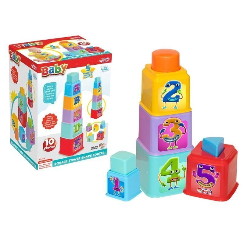 5 Stapelbausteine ​​mit wunderschönen, farbenfrohen Bildern. Kinder lernen spielerisch das Stapeln von Bausteinen und erkennen Formen und Farben. Dies fördert die Hand-Augen-Koordination und die allgemeine Geschicklichkeit. Verpackungsmaße: 162 x 142 x 223 mm.