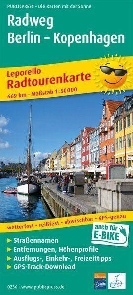 At the Brandenburg Gate in Berlin, the cycling path to Copenhagen begins. The map for the cycling tour divides this tour into manageable sections through Leporello folding and provides information about the respective region in text parts. The route seems appealing to cyclists as it leads through flat nature reserves rich in lakes in both countries, but it also has cultural attractions to offer at the start and finish. Don't forget: Rostock and the ferry crossing started here.