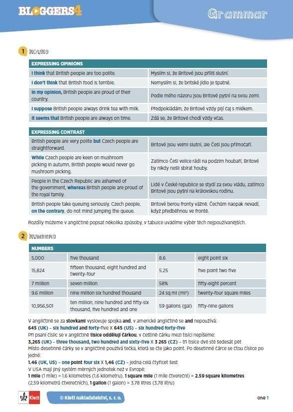 Bloggers 4 (A2.2) – gramatický přehled (leporelo) (2022)