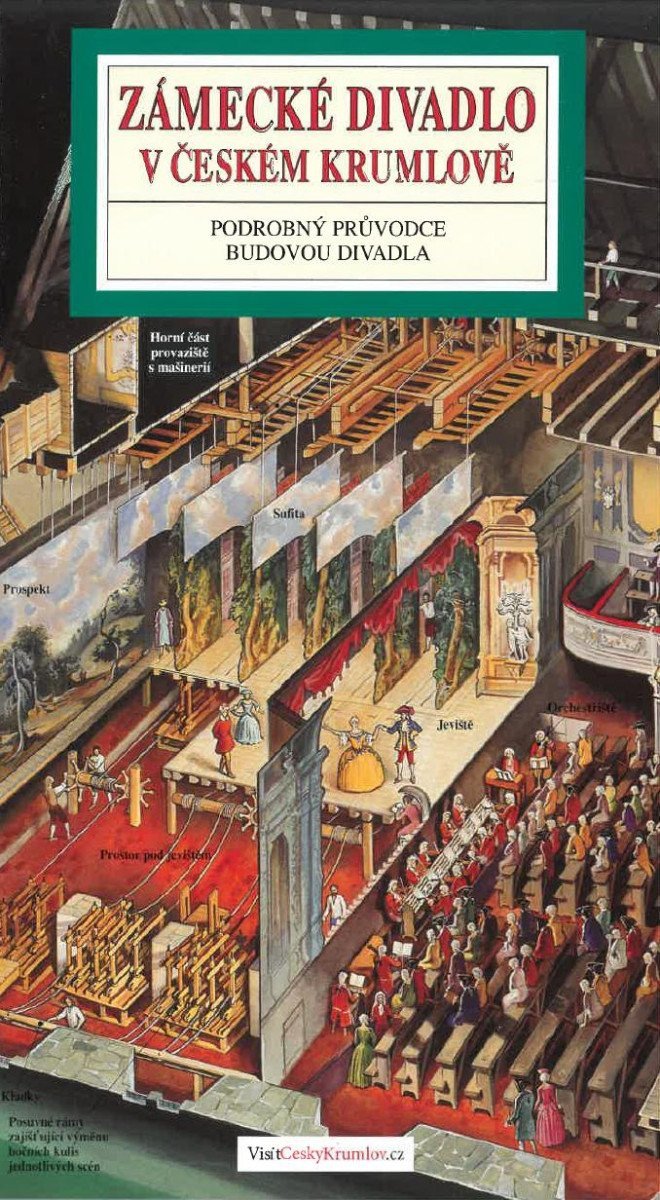 A drawn panoramic map of the baroque theater building with a detailed illustrated guide. The pictorial guide will take you through the unique, completely preserved baroque theater scene in the form of a cross-section of the building during a performance. The guide displays 11 scenic images, a clear view of the original machinery backstage, examples of costumes, sets, and machines used to achieve optical and sound effects.