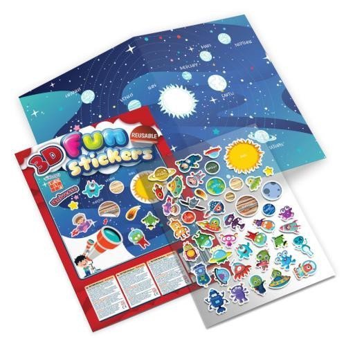 How many planets make up our solar system? What adorable cosmic creatures inhabit the mysterious little planet? Give children endless fun and develop their imagination with 3D stickers – an innovative novelty featuring reusable stickers in the theme – Mysterious Universe! The cute storytelling set includes a double-sided A3 background with scenes from the solar system and lunar landscapes, along with several dozen reusable 3D foam stickers. It will delight every little astronaut eager to explore the secrets of the infinite cosmos. The 3D stickers provide space for an incredible number of stories that unfold right before the child's eyes. They are both the author and the storyteller. No limits, no rules, just amazing children's fantasy and imagination. Discover the fantastic possibilities of 3D stickers for yourself! Format: A4 (when opened A3)