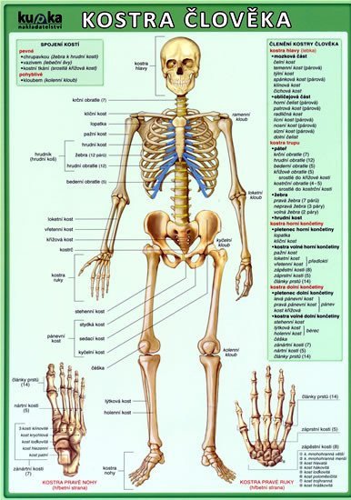 Detaillierte anatomische Zeichnungen des menschlichen Skelettsystems. Ein nützliches Hilfsmittel für Schülerinnen und Schüler der Primar- und Sekundarstufe. Der Titel beinhaltet die grundlegende Gliederung des menschlichen Skeletts. Eine geeignete Ergänzung zum naturwissenschaftlichen Überblick. Illustrationen von Tereza Budilová.