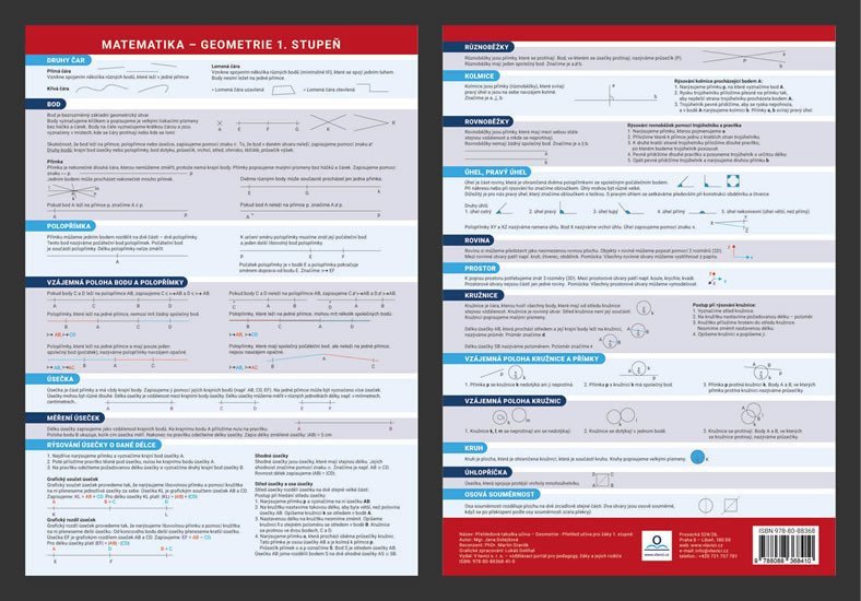 A clearly structured geometry table serves as a valuable tool for first grade students in mathematics classes. Lines, straight lines, segments, drawing, parallel and perpendicular lines, and other topics. Prepared in accordance with RVP ZV.