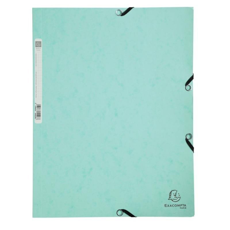 High-quality 3-flap folders made from a single piece of premium marbled cardboard in pastel color. Writable spine label. Secure fastening with rubber bands. Resistant to moisture and abrasion. Printed logo on the front. For A4 maxi documents. Dimensions: 240 × 320 mm. Material: cardboard, 400 g/m2. Capacity: 250 sheets of paper (80 g/m2). Eco-certification FSC.