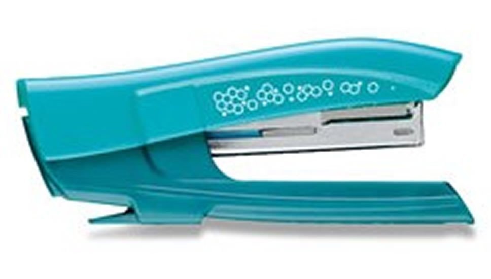 Eco-friendly stapler made from recycled plastic.