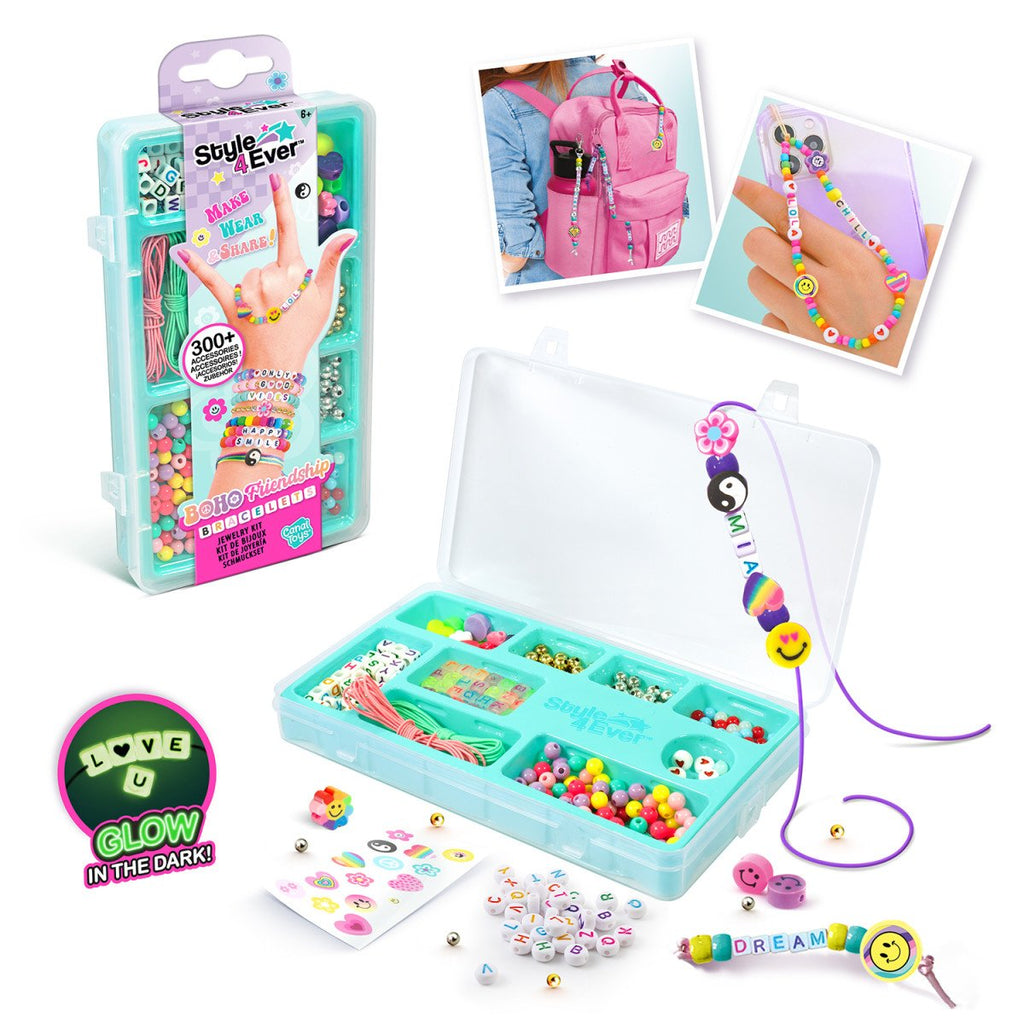 Make your own bracelets for yourself and friends with the Style4Ever set. The package includes over 300 accessories for bracelet making. The letter beads glow in the dark. Suitable for children aged 6 and up.