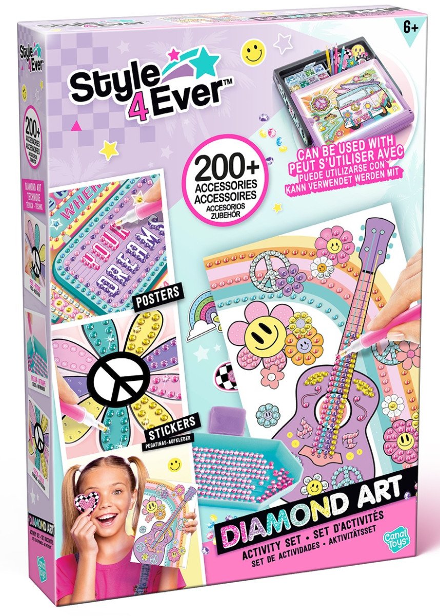 Discover fun crafting with Style4Ever diamond painting! This creative set includes 2 sheets of stickers for diamond gems, over 2500 colored gems, an applicator/pen, a tray, wax, and a gem organizer. Diamond painting is ideal for children aged 6 and up, supporting the development of fine motor skills, creativity, and concentration. Perfect entertainment for long hours for little artists!