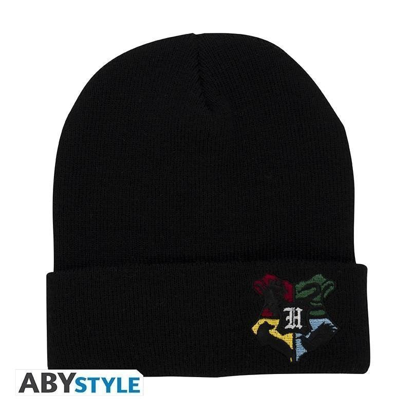 Harry Potter hat with Hogwarts motif.