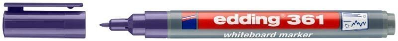 The edding 361 whiteboard marker with a fine tip allows for writing with a thin line on all non-porous surfaces such as enamel or melamine. The marker can also be used on flipcharts. The written line dries quickly, is lightfast, and can be erased dry. The ink does not contain butyl acetate. The clip on the cap prevents the marker from rolling away. The marker is refillable (replacement ink edding BTK 25 and BT 30) and its round tips are replaceable. By extending the life of the marker, you help reduce the amount of municipal waste. Round tip. Line width: 1 mm. Made in Germany.