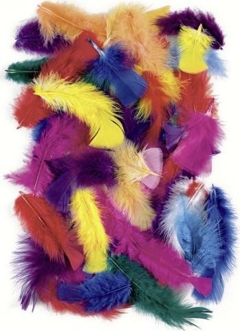 Feather colors - white, sunny yellow, peach, orange, red, pink, pink, lilac, sky blue, turquoise, royal blue, dark green