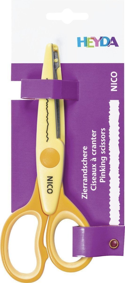 Decorative scissors that help you embellish the edges of photos, greeting cards, decorative frames, etc. Easy to use on paper or thin foil. The pattern is printed on the top side of the scissors.