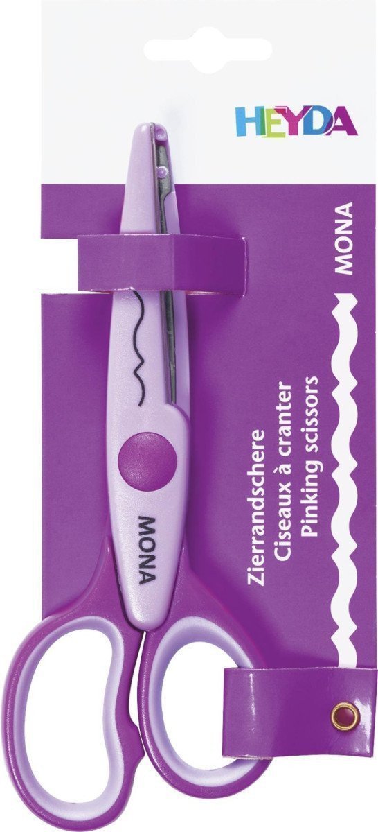 Decorative scissors that help you embellish the edges of photos, greeting cards, decorative frames, etc. Easy to use on paper or thin foil. The pattern is printed on the top side of the scissors.