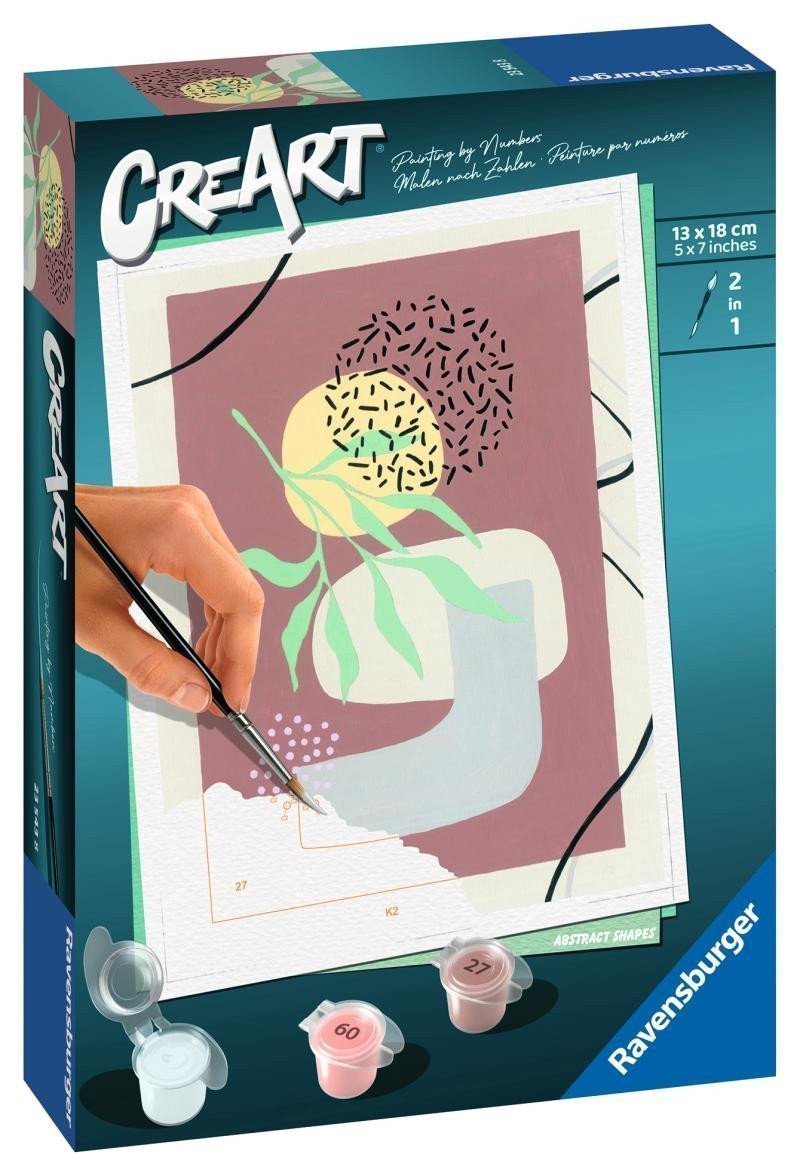 CreArt - this is creative fun literally for everyone. Become a professional painter for a moment and paint your own picture. Gradually color the individual areas according to the instructions (each number on the canvas corresponds to a specific color) and enjoy the joy of creative work that will keep you entertained for hours. Painting is a great activity that not only entertains but also exercises dexterity, improves concentration, and guarantees satisfaction and a sense of pride for all artists. The set includes everything you need for painting: high-quality, sturdy cardboard base with a picture template featuring numbered areas, a set of acrylic paints, a brush, a cardboard stand for the paint cups, and a frame. The colored areas create a professionally looking artwork. Once you finish the painting, let it dry and frame it in the frame included in the package. Painting has never been so easy.