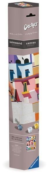 CreArt - it's creative fun literally for everyone. Become a professional painter for a moment and paint your own picture on a high-quality canvas measuring 30 cm x 40 cm. This beautiful painting with colorful houses will adorn any wall. Gradually color the individual areas according to the instructions (each number on the canvas corresponds to a specific color) and enjoy the joy of creative work that will keep you entertained for hours. Painting is a great activity that not only entertains but also exercises skill, improves concentration, and guarantees satisfaction and a sense of pride for all artists. The set includes everything you need for painting: a canvas to unfold with a picture template with numbered areas, a set of acrylic paints, a brush, and a cardboard stand for the paint cups. The painted areas create a professionally looking artwork. Once you finish the painting, let it dry thoroughly. Painting on canvas has never been so easy.