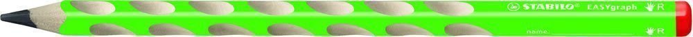 Ergonomically shaped graphite pencil. Right-handed variant. Triangular design and non-slip pads for an intuitively correct grip. Edge width of 9 mm - recommended size for primary school students. Break-resistant HB lead with a diameter of 3.15 mm. Name label.