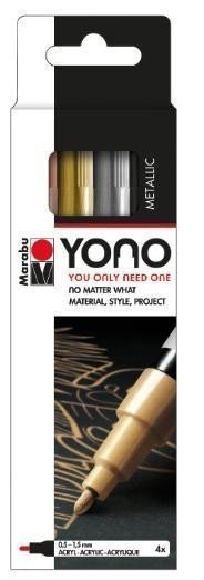 MANY POSSIBILITIES YONO is an opaque acrylic marker for almost all surfaces. Let your ideas run wild, think big. Rich matte colors have as few limitations as your creativity. Bring your ideas to life and show your environment what you're made of. Water-soluble and lightfast colors offer you all the possibilities, no matter what task you want to accomplish. An acrylic marker for almost all surfaces, such as metal, glass, porcelain, wood, fabrics, stone, plastic, canvas. Brilliantly bright colors are matte, opaque, lightfast, and water-based (neon: semi-transparent, partially lightfast). Wet inks can be mixed, blended, or used as watercolors. Once dry, the inks are waterproof and can be varnished. High-quality Japanese nib, all nibs are replaceable. SHAKE: Before first use, shake the marker with the cap closed for 60 seconds. The mixing ball in the marker makes a rattling sound. PUSH IT: Slowly press the tip onto test paper several times until the ink becomes visible. When the ink flow is activated, the nib will slowly soak up the ink. TEST: When the tip is filled with color, test the marker on test paper. DRAW IT: For even application of color, regularly...