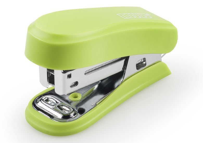 A handy stapler for every bag, including school bags. Metal stapler with a plastic base. Integrated metal staple remover. Top loading with easy staple guidance. Stapler length 6 cm. Maximum paper insertion depth 25 mm. Packaging includes 320 staples 24/6.