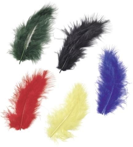 Dekorativní peříčka Marabu mix - žlutá, červená, modrá a zelená a černá 15 ks / 9 cm