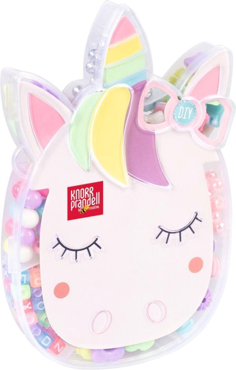 Set for designing necklaces and bracelets. The package includes plastic beads in various colors and designs, white and pink elastic thread, and a resealable box. The pearls are color-coordinated, both transparent and opaque. Suitable for children aged 4 and up.