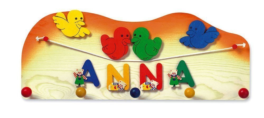 Wooden coat rack as a decoration for any child's room, in cheerful colors with pictures of laundry on a line, with a colorful inscription with teddy bears, 5 handles, dimensions: 60x5x24 cm.