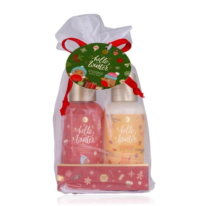 Contents: 100 ml shower gel, 100 ml body lotion, fragrance: gingerbread and cranberry. Brand: ACCENTRA