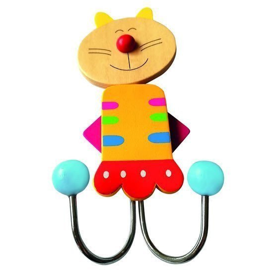 A cheerful decoration for any child's room. A wooden hanger with an animal motif - a cat.
