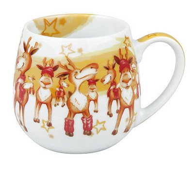 All our mugs, cups, saucers, trays, and other goods have passed health safety certification (valid for the EU) and are suitable for all standard types of dishwashers. This mug is a great gift not only for under the Christmas tree. It is suitable for anyone who enjoys a quality tea, coffee, or other beverage from high-quality porcelain. Material: Porcelain Design: Chubby mug with a reindeer Height: 89 mm Volume: 420 ml