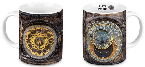 Prague Astronomical Clock - this is a medieval astronomical clock that has been mentioned since 1402 as part of the tower on the Old Town Hall, and since 1410 it has taken on its current form. All our mugs, cups, plates, trays, and other products have passed health safety certification (valid for the EU) and are suitable for all standard types of dishwashers. This mug is a great gift for all travelers and lovers of our beautiful mother Prague, as well as for anyone who enjoys a quality tea, coffee, or other beverage from fine porcelain. Material: Porcelain Design: Prague Astronomical Clock Height: 105 mm Volume: 460 ml
