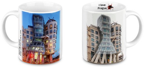 Dancing House - adorns the right bank of the Vltava at the corner of Rašínovo nábřeží. Completed in 1996 and also known as Ginger and Fred. All our mugs, cups, saucers, trays, and other products have passed health safety certification (valid for the EU) and are suitable for all standard types of dishwashers. This mug is a great gift for all lovers of extravagant modern architecture, as well as for anyone who enjoys a quality tea, coffee, or other beverage from fine porcelain. Material: Porcelain Design: Dancing House Height: 105 mm Volume: 460 ml